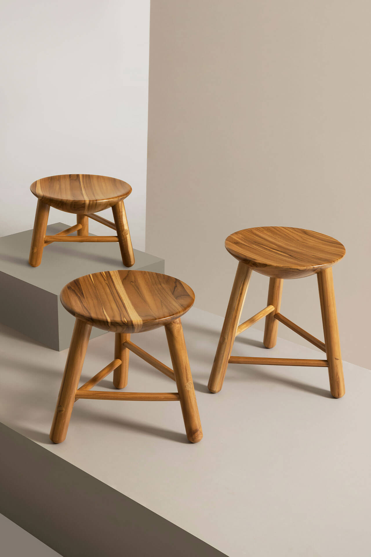 O Banco Pião está disponível em três versões de alturas, sendo duas menores: a clássica “bordadeira” (com 27cm de altura) e a versão intermediária (com 39cm de altura). A versão original (com 44cm de altura) é perfeita para utilizar com mesas de jantar padrão (75cm) ou como complemento em salas e quartos. Seu nome remete a um antigo e tradicional brinquedo, o pião, devido ao formato cônico de seu assento. As versões mais baixas podem ser usadas sozinhas ao lado de sofás e até mesmo como um conjunto de bancos.