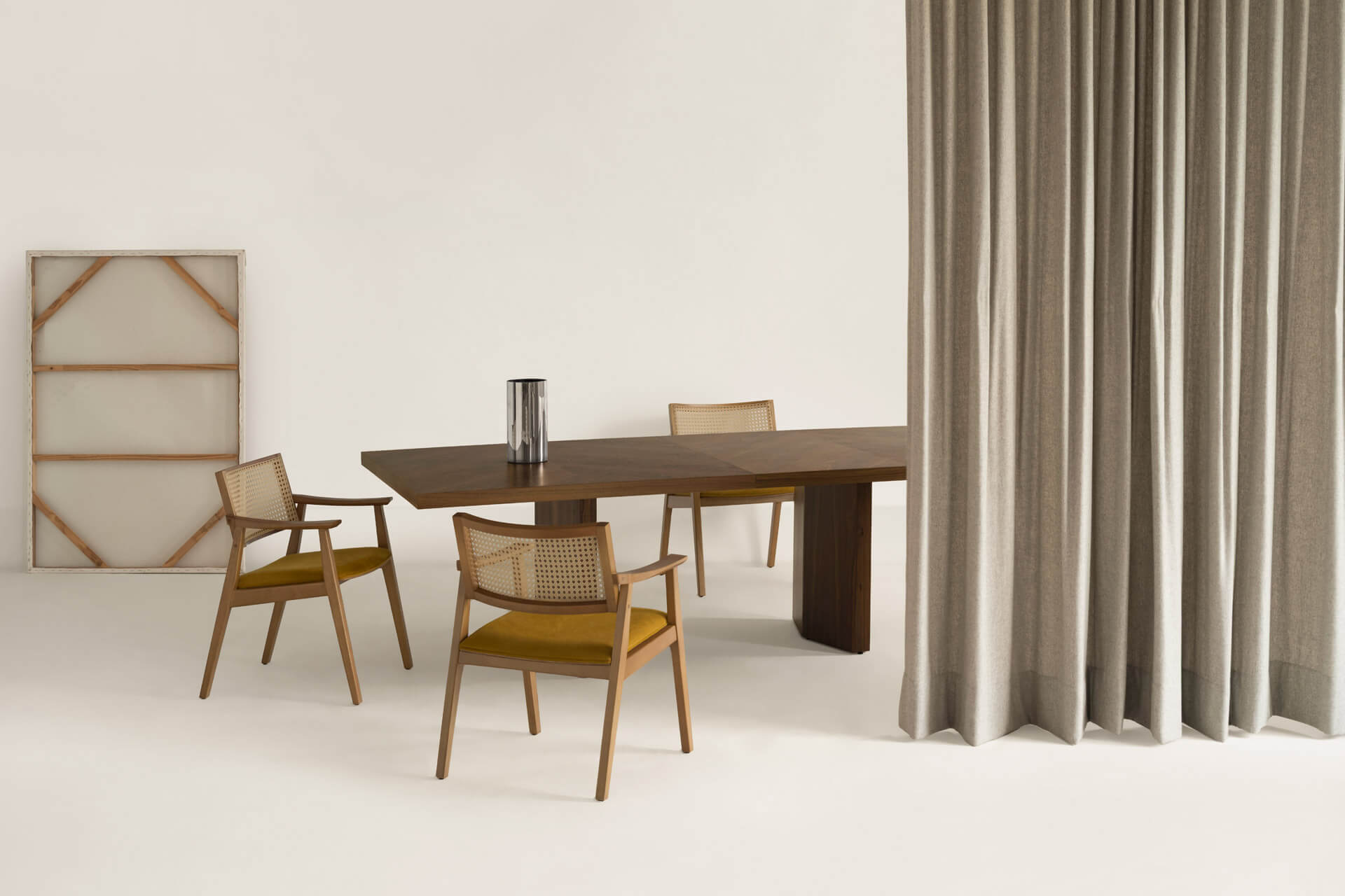 Desenhada a partir da Poltrona de mesmo nome, a Cadeira Giulia possui palhinha apenas na parte frontal do encosto, para mais leveza. Seu assento recebe um sublinhado de madeira e proporciona ao desenho ainda mais delicadeza.