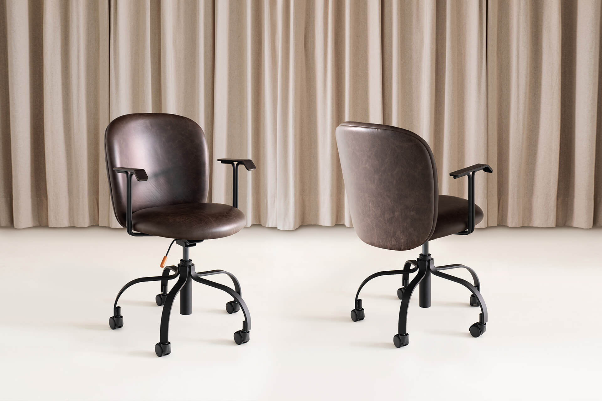 A Prosa é uma cadeira que traz contemporaneidade e conforto para o home office e ambientes corporativos. Seu encosto possui uma curvatura exata que acomoda bem as costas e pode ser revestido em 2 tecidos diferentes. Utiliza uma base com altura regulável feita em barra chata e seus braços recebem um acabamento em couro natural atanado.
