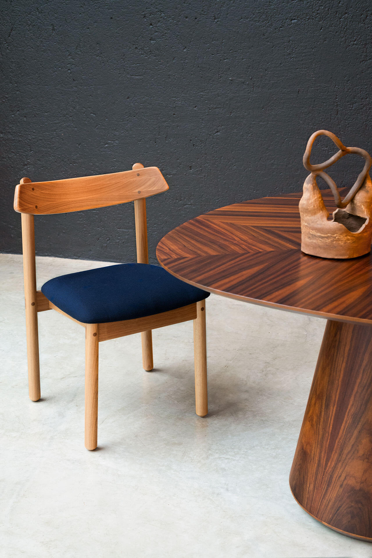 A Cadeira Yá combina simplicidade e sofisticação em um desenho de linhas puras e detalhes sutis, que resultam em um visual moderno e atemporal. Empilhável e prática, destaca-se pela estrutura e encosto em madeira maciça — um diferencial que valoriza a peça. O assento pode ser estofado em uma ampla variedade de tecidos, incluindo couro.