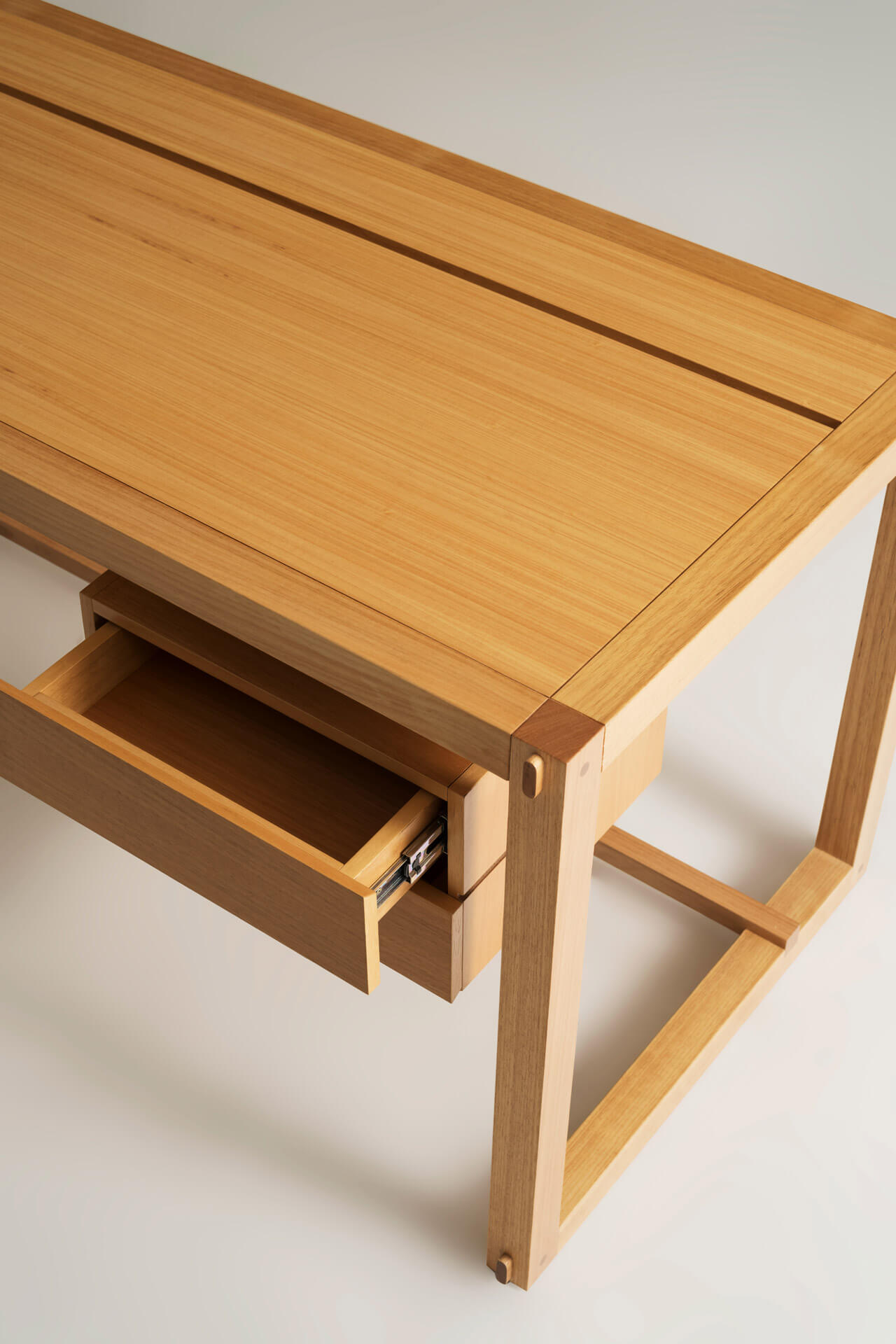 A Escrivaninha Linea apresenta um design leve e contemporâneo, ideal para compor ambientes modernos com elegância. Seu tampo amplo, com recorte funcional para passagem de fios, aliado aos gaveteiros suspensos, garante praticidade e organização no dia a dia. Versátil, valoriza a beleza da madeira natural, destacando encaixes aparentes e levemente saltados que conferem personalidade e sofisticação à peça.