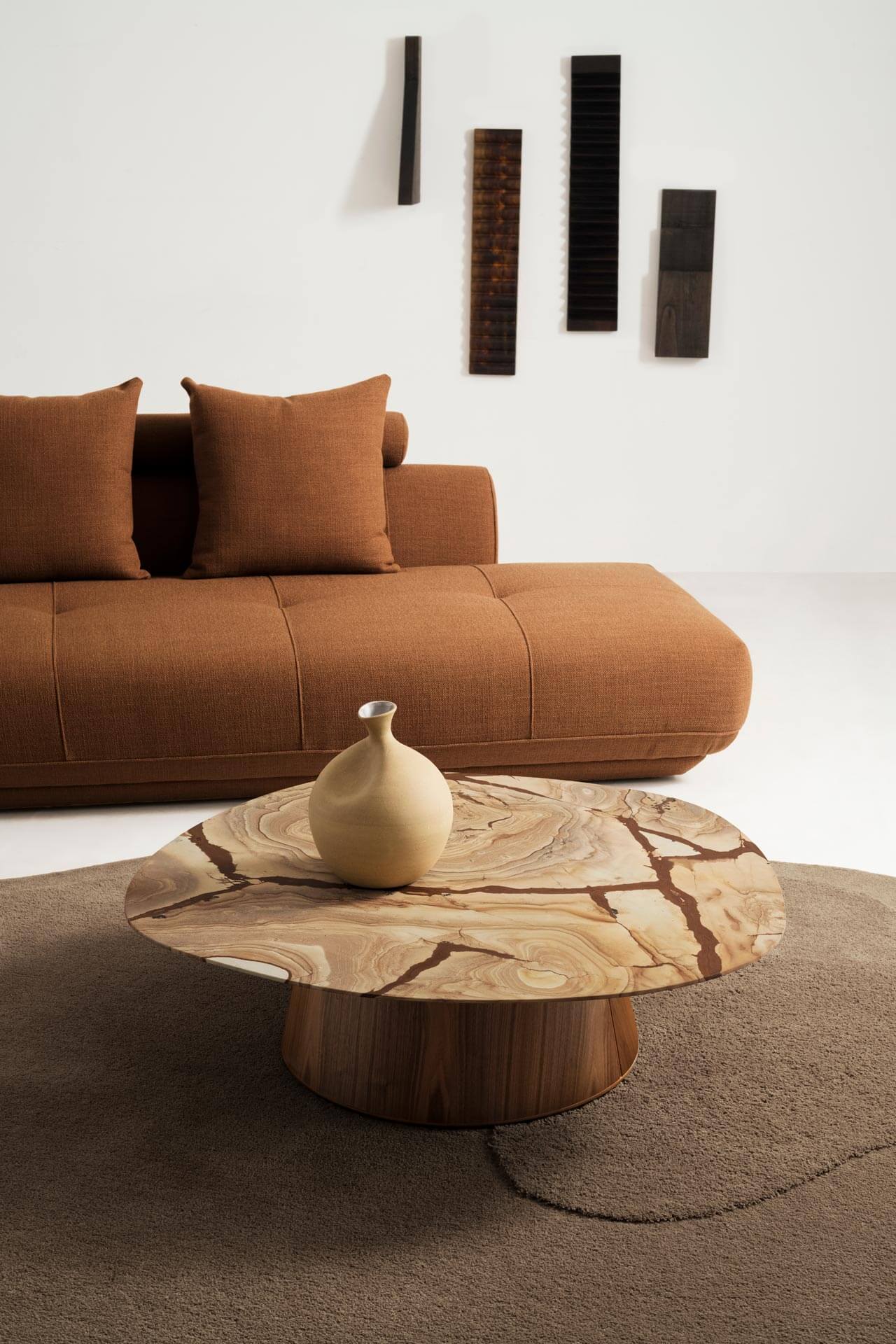 A Linha Lótus ganha ainda mais identidade com as novas Mesas Lótus Mármore, que recebem um tampo com formato orgânico marcante, com curvas suaves que valorizam a materialidade do mármore. Conheça sua outra versão com o tampo de madeira.