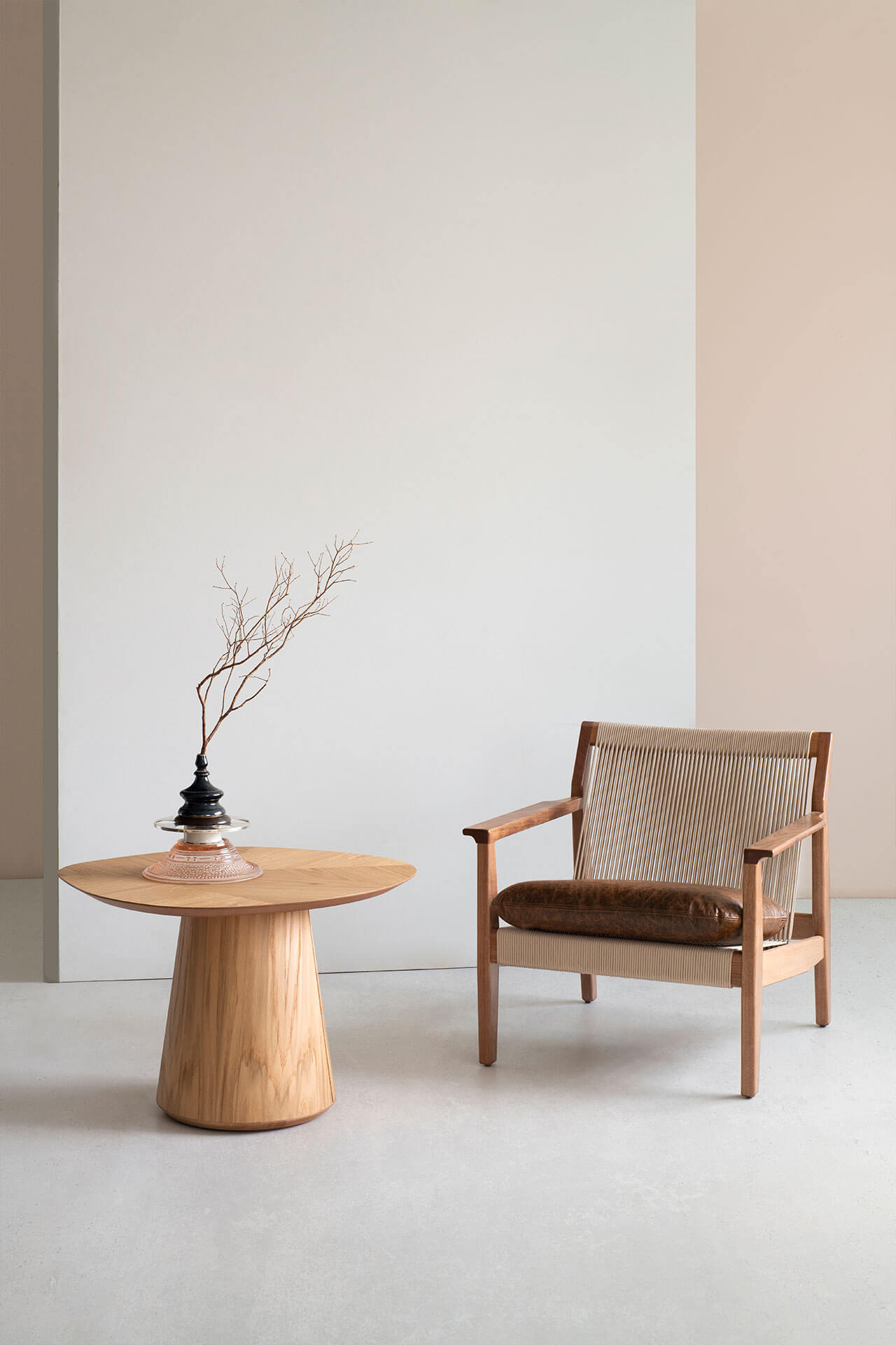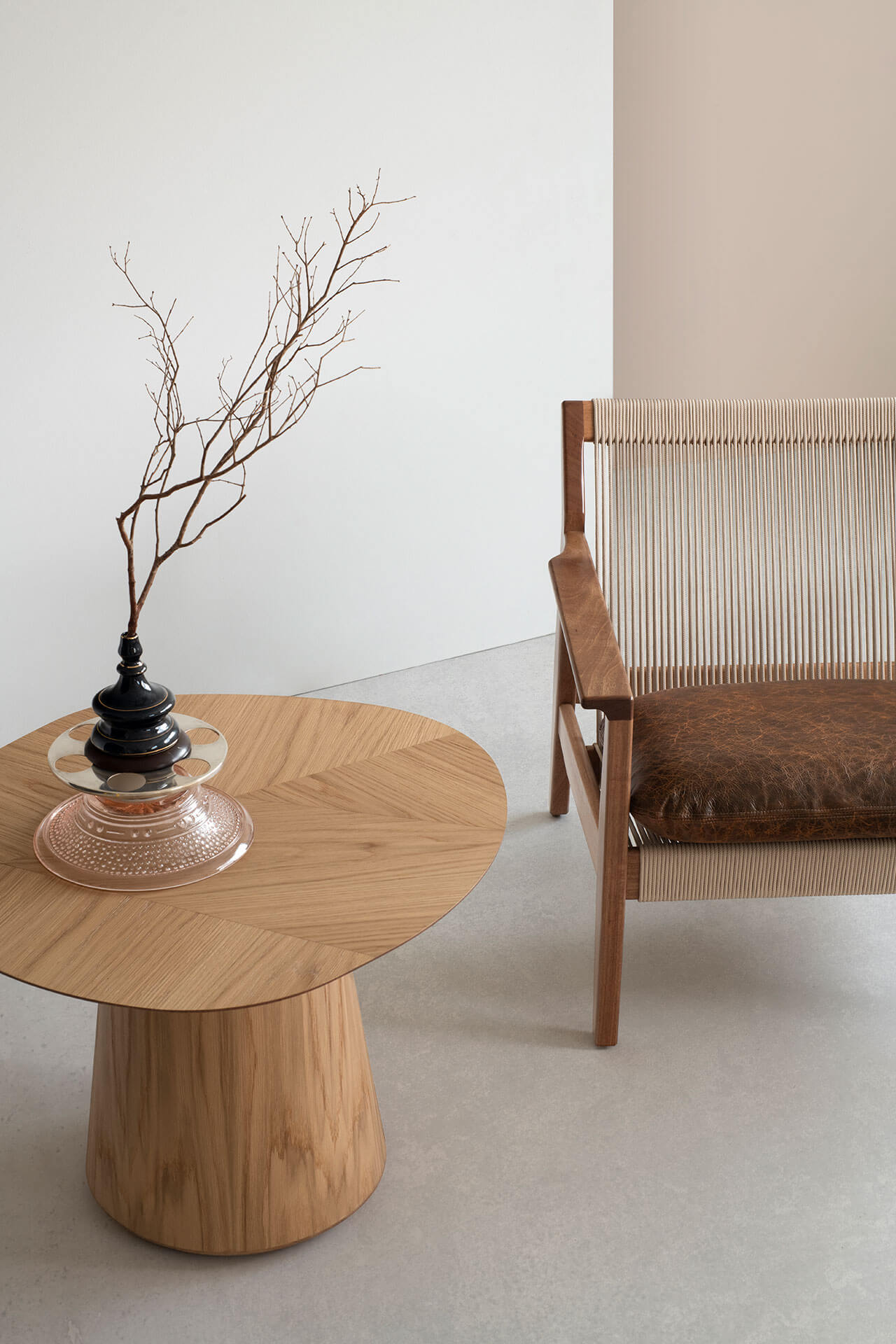 A Mesa Lateral Máxi Lótus possui um tampo com formato orgânico que recebe um trabalho de marchetaria com suas lâminas. De proporções maiores em relação às Mesas Laterais Lótus, pode ser feitas em diferentes tipos de madeira natural.