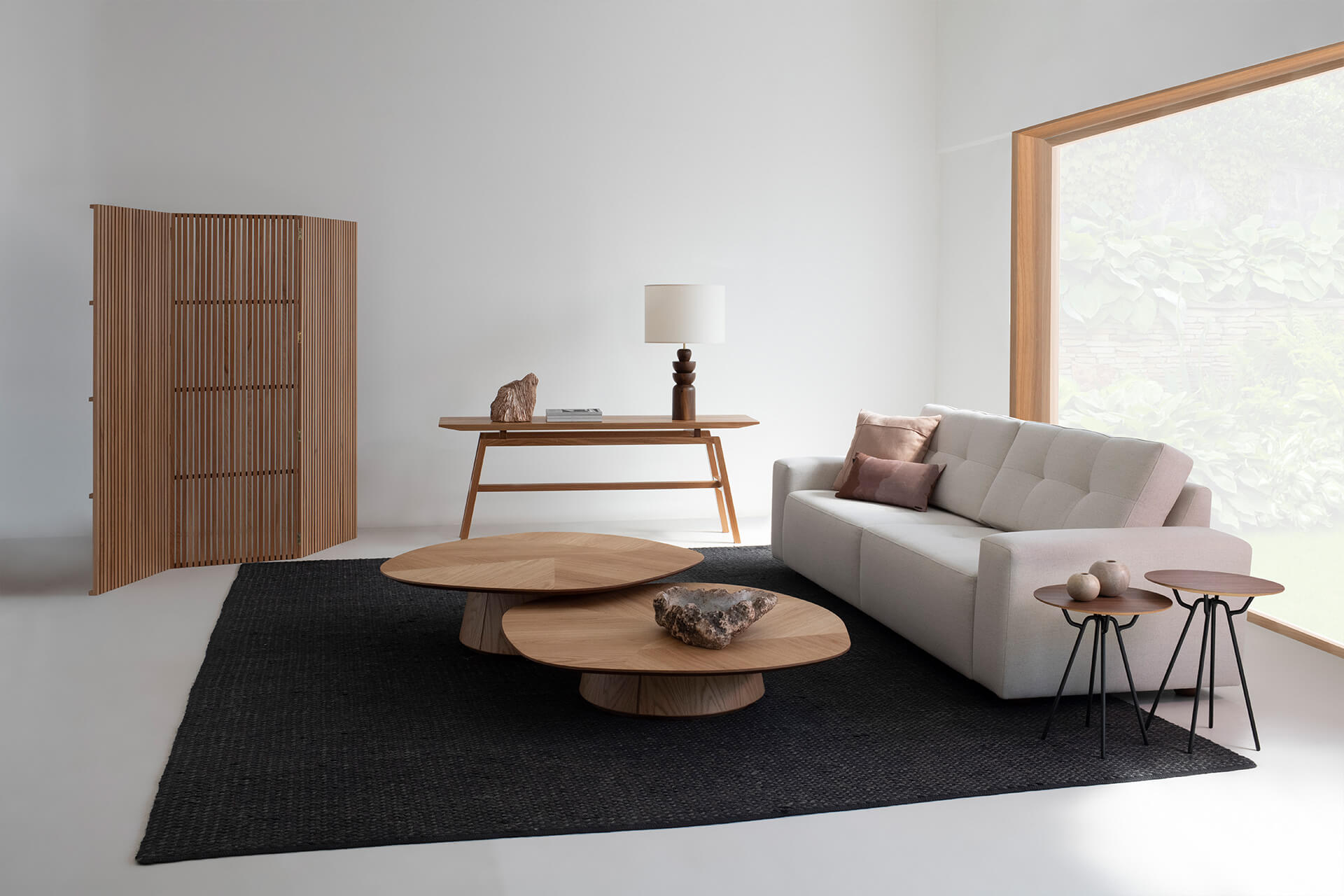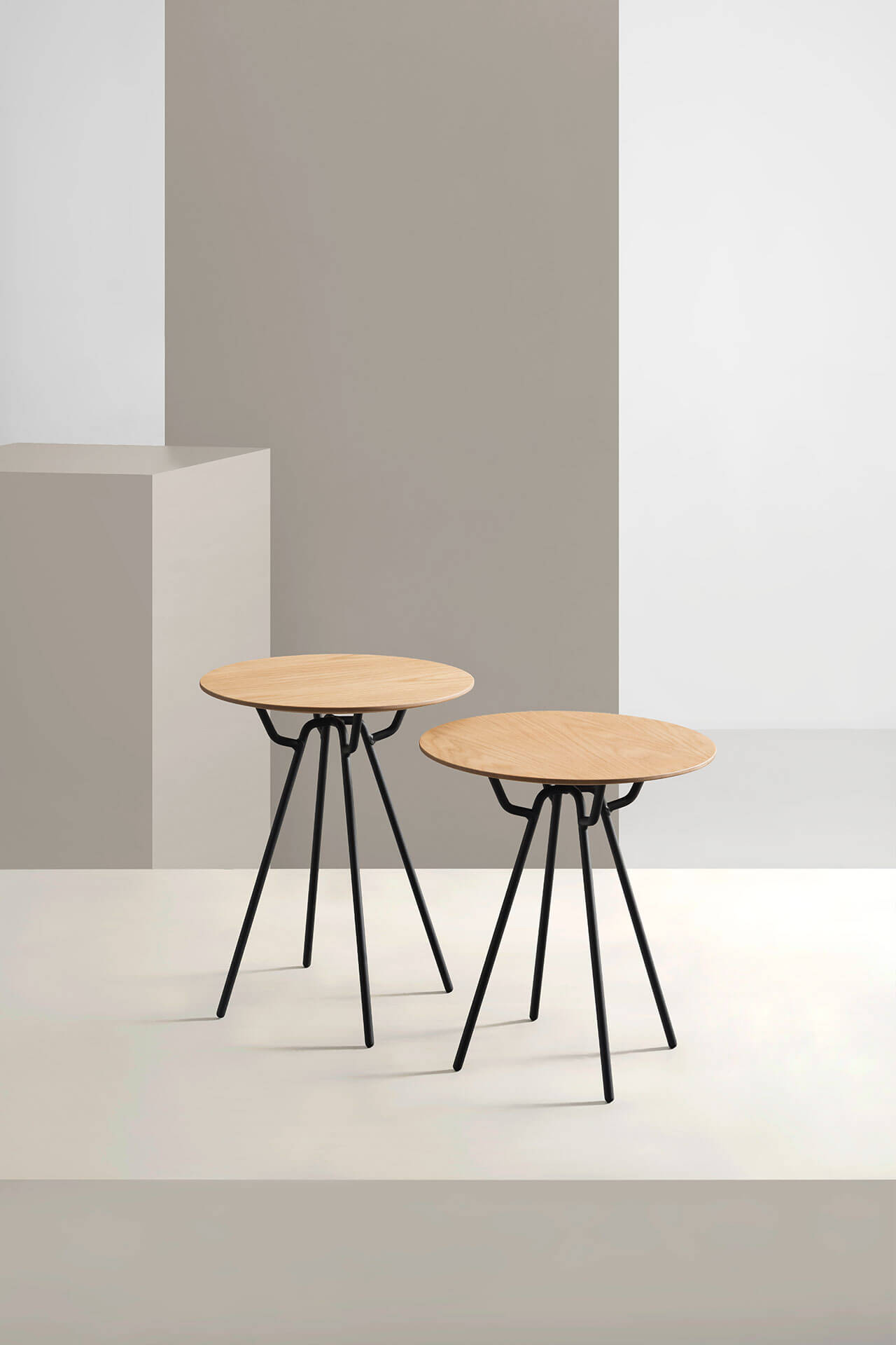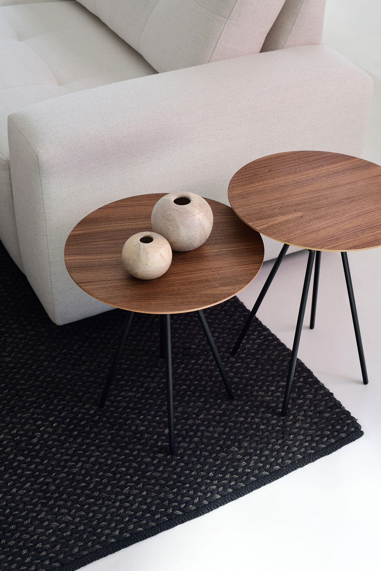 Disponível em duas alturas, a peça pode ser usada sozinha, em conjunto ou combinada a outras mesinhas e toras.
