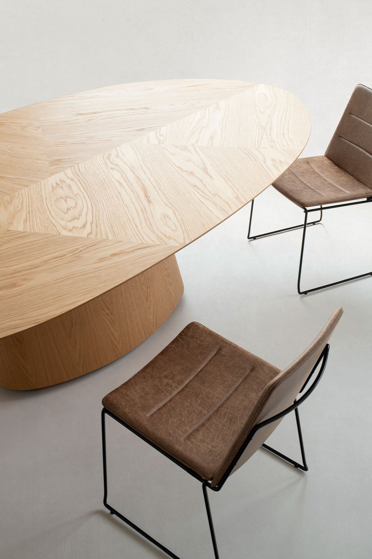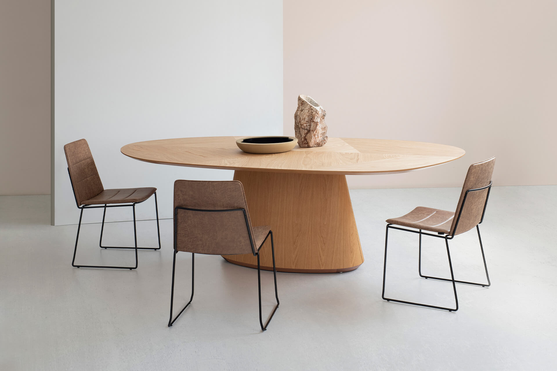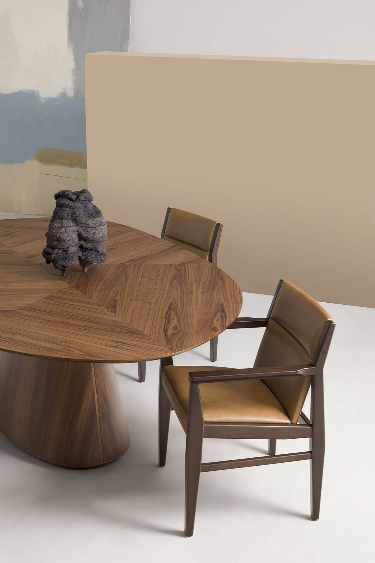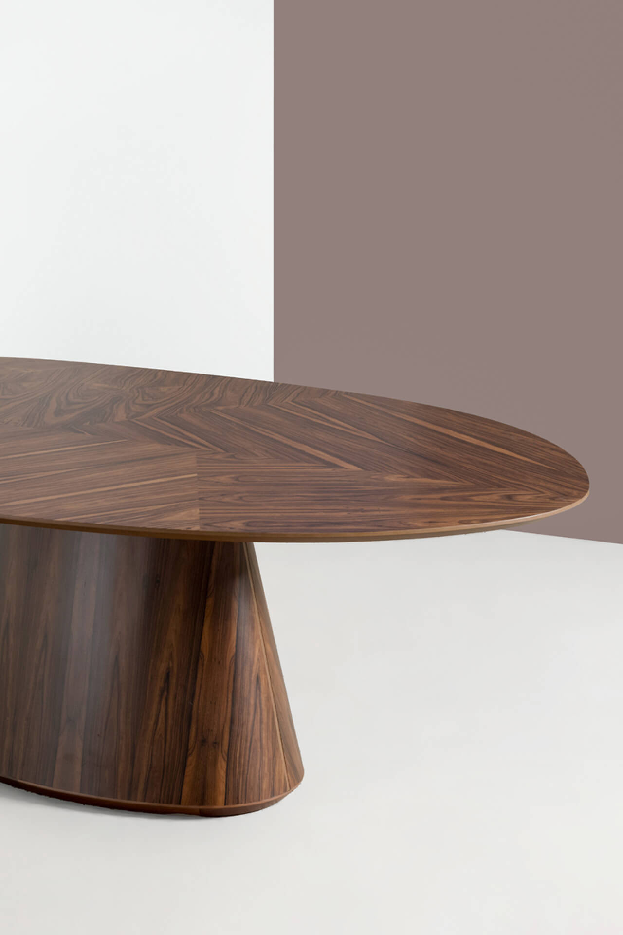 A mesa de jantar Lótus tem proporções generosas que permitem mais liberdade e fluidez na composição e posicionamento das cadeiras. Toda feita em lâmina de madeira natural, seu tampo de marchetaria (técnica de marcenaria artesanal tradicional) exibe desenhos irregulares que conversam com toda a proposta da peça. A Mesa Lótus é perfeita para quem busca uma peça com presença.
