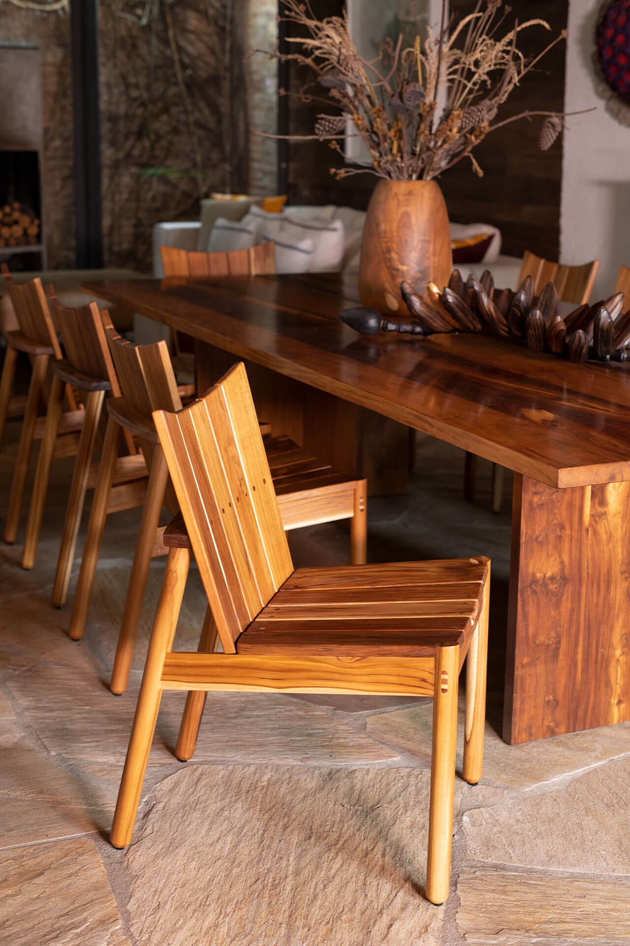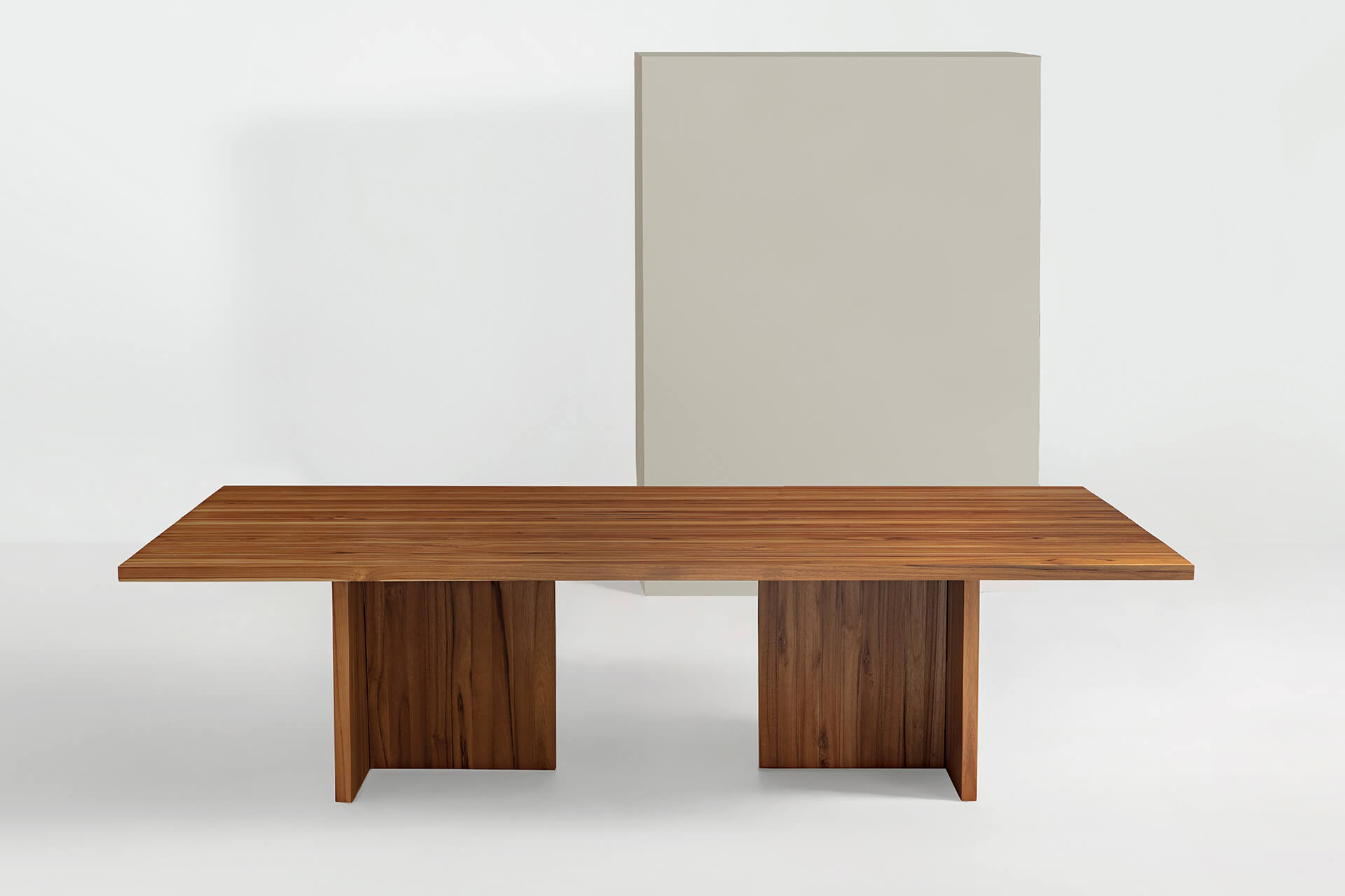 De formas retas, a Mesa Paralelo recebeu esse nome pela composição das duas tábuas que formam o desenho de seu tampo. Sua robustez marcante se dá pela espessura de seu material, que pode ser madeira maciça. Disponível nas versões quadrada e retangular, em diversas opções de tamanhos. Desenhada em 2008.