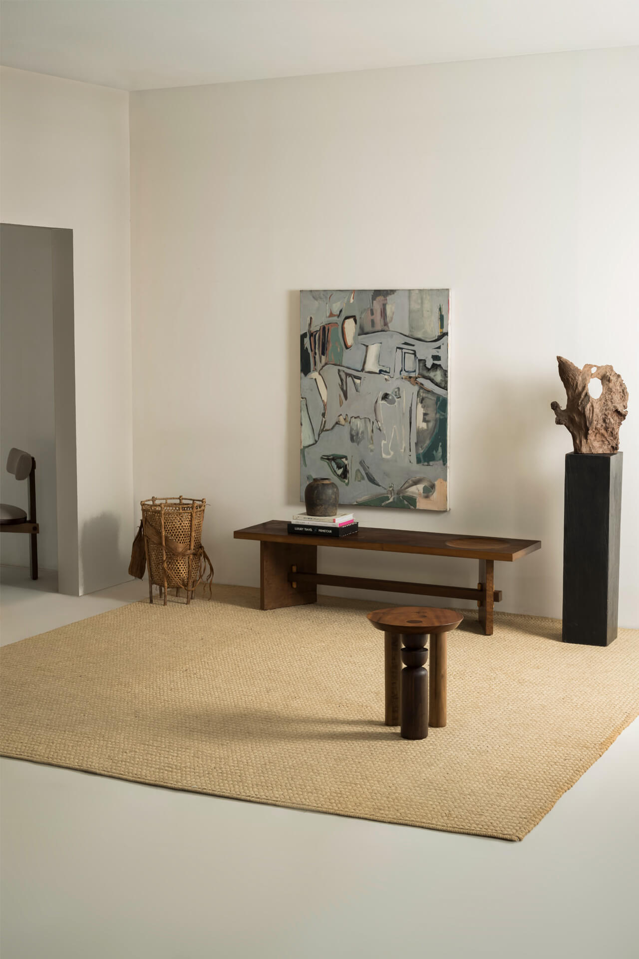 A coleção de Mesas Laterais Trio traduz a imersão da marca no design artesanal, com uma proposta exclusiva e refinada. Produzidas em madeira maciça nobre, as mesas — Broto, Cone, Listras e Pirâmide — se diferenciam pelo desenho da base. A assimetria intencional dos pés, com um apoio em destaque, confere identidade e presença escultórica a cada peça. Algumas versões contam ainda com detalhes em latão maciço, acrescentando um contraste sofisticado ao conjunto.
