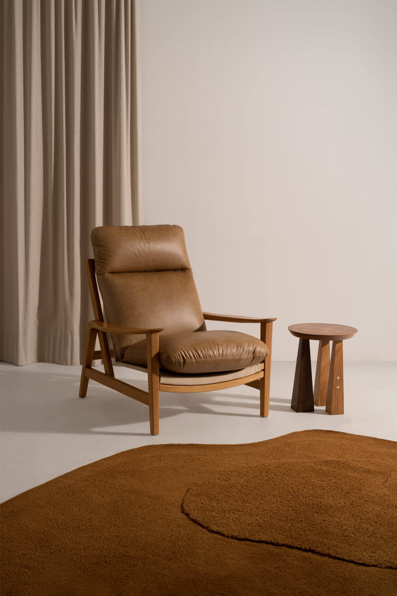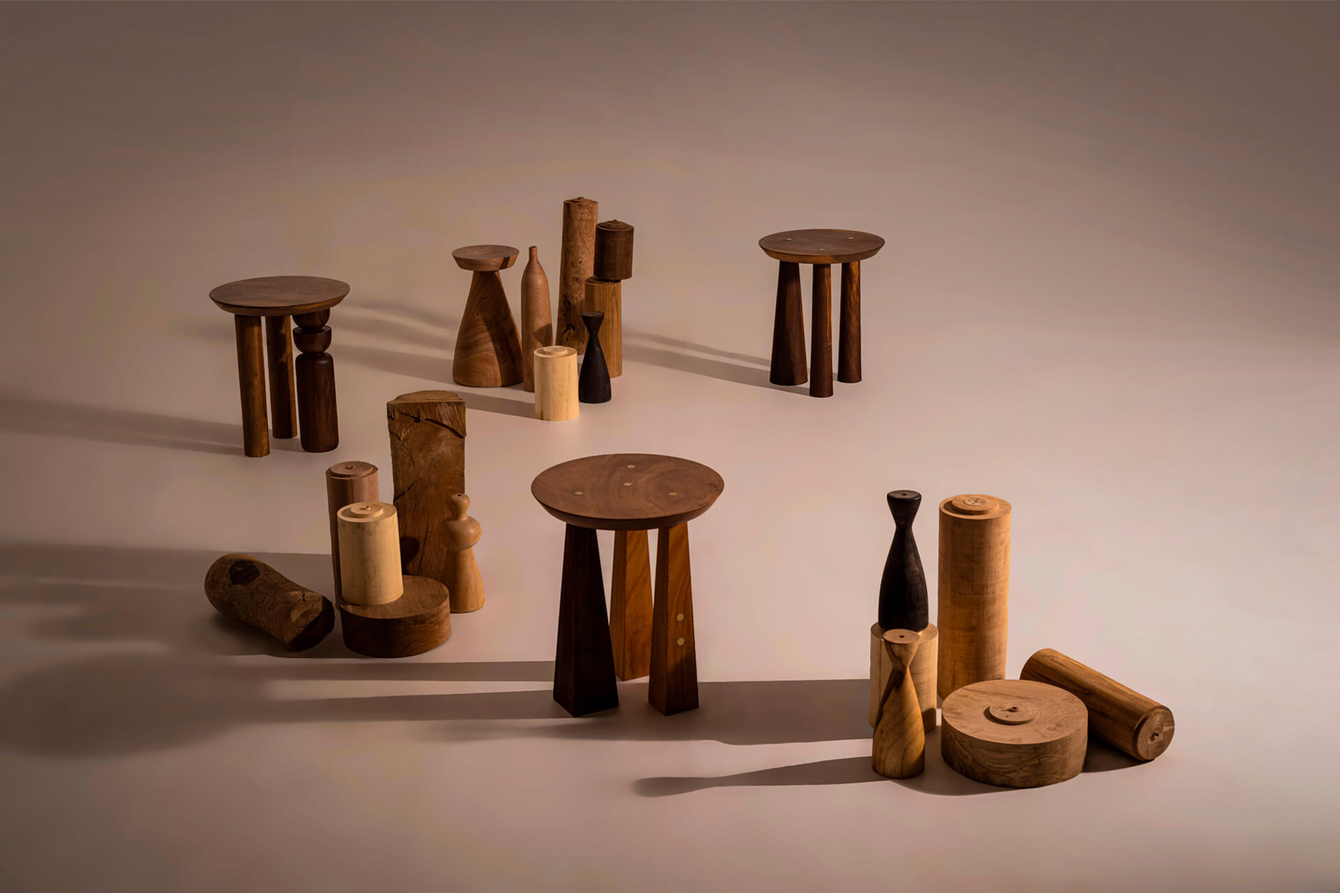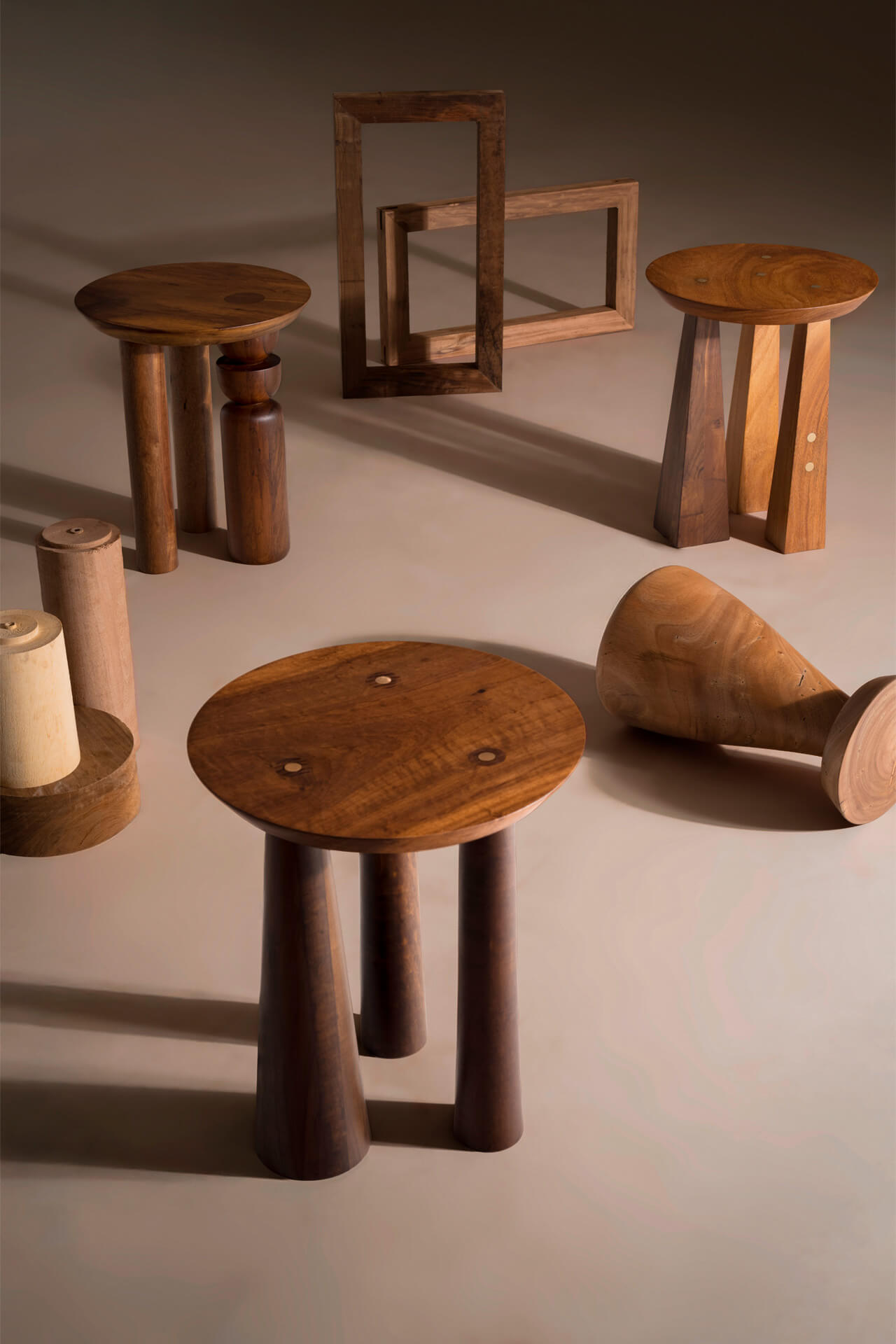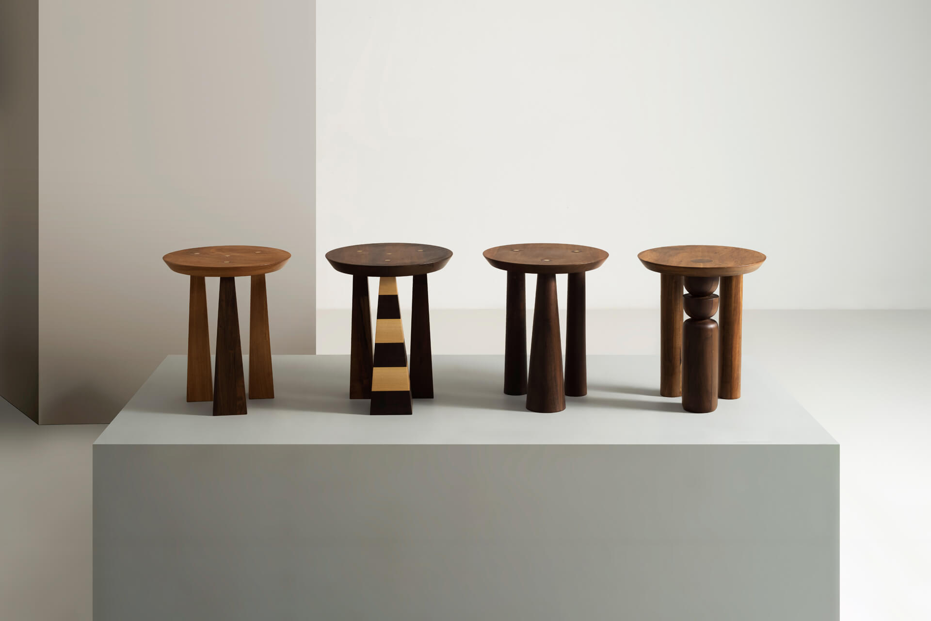A coleção de Mesas Laterais Trio traduz a imersão da marca no design artesanal, com uma proposta exclusiva e refinada. Produzidas em madeira maciça nobre, as mesas — Broto, Cone, Listras e Pirâmide — se diferenciam pelo desenho da base. A assimetria intencional dos pés, com um apoio em destaque, confere identidade e presença escultórica a cada peça. Algumas versões contam ainda com detalhes em latão maciço, acrescentando um contraste sofisticado ao conjunto. Por ser uma peça artesanal, cada unidade tem um padrão e tonalidade únicos, podendo também ocorrer pequenas variações de medidas.