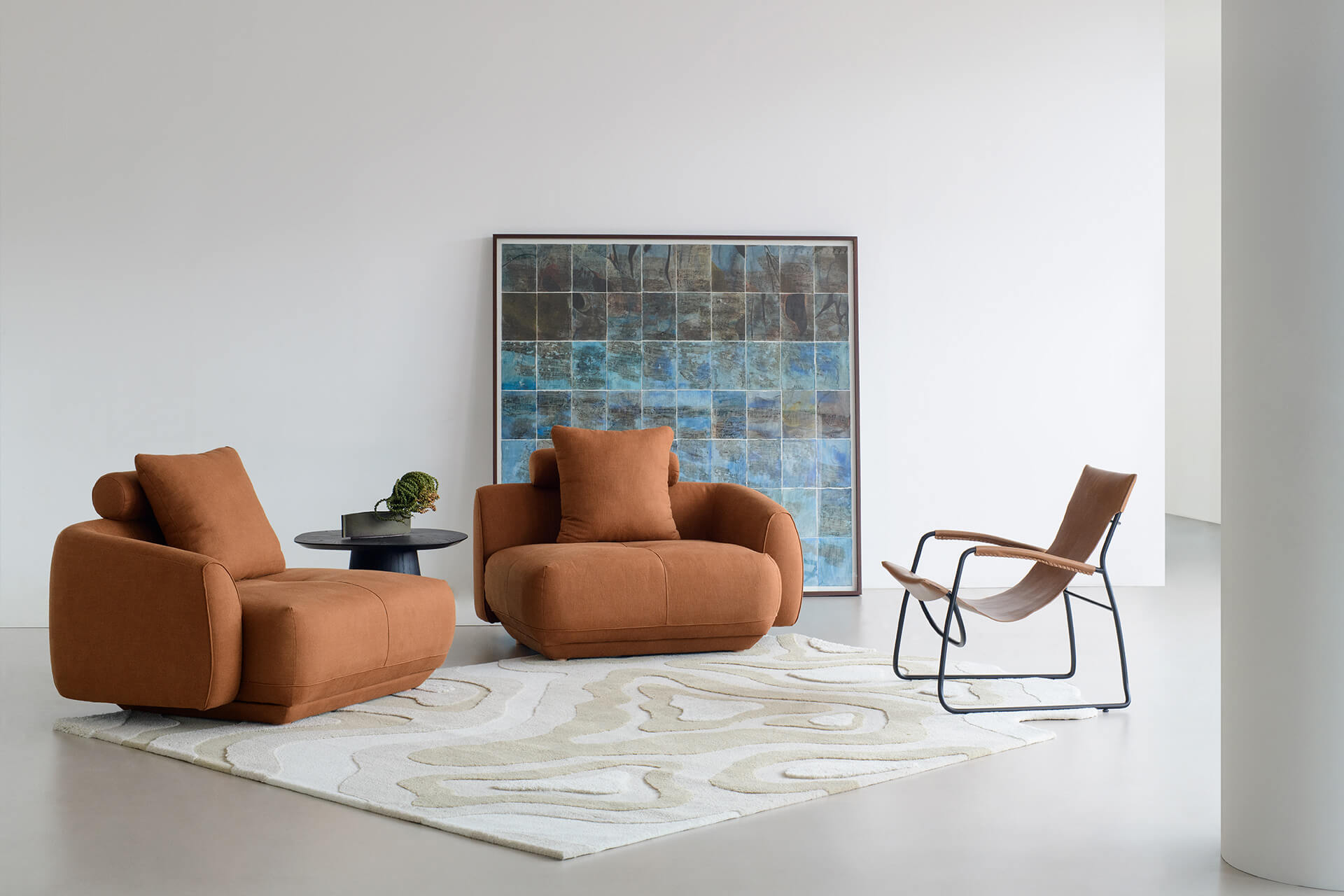 Uma poltrona de proporções generosas e cheia de conforto.  Composta por molas combinadas com espuma de diferentes densidades e manta acrílica, o que resulta em um sentar muito confortável. Pode ser feito em várias opções de tecido da nossa linha exclusiva.