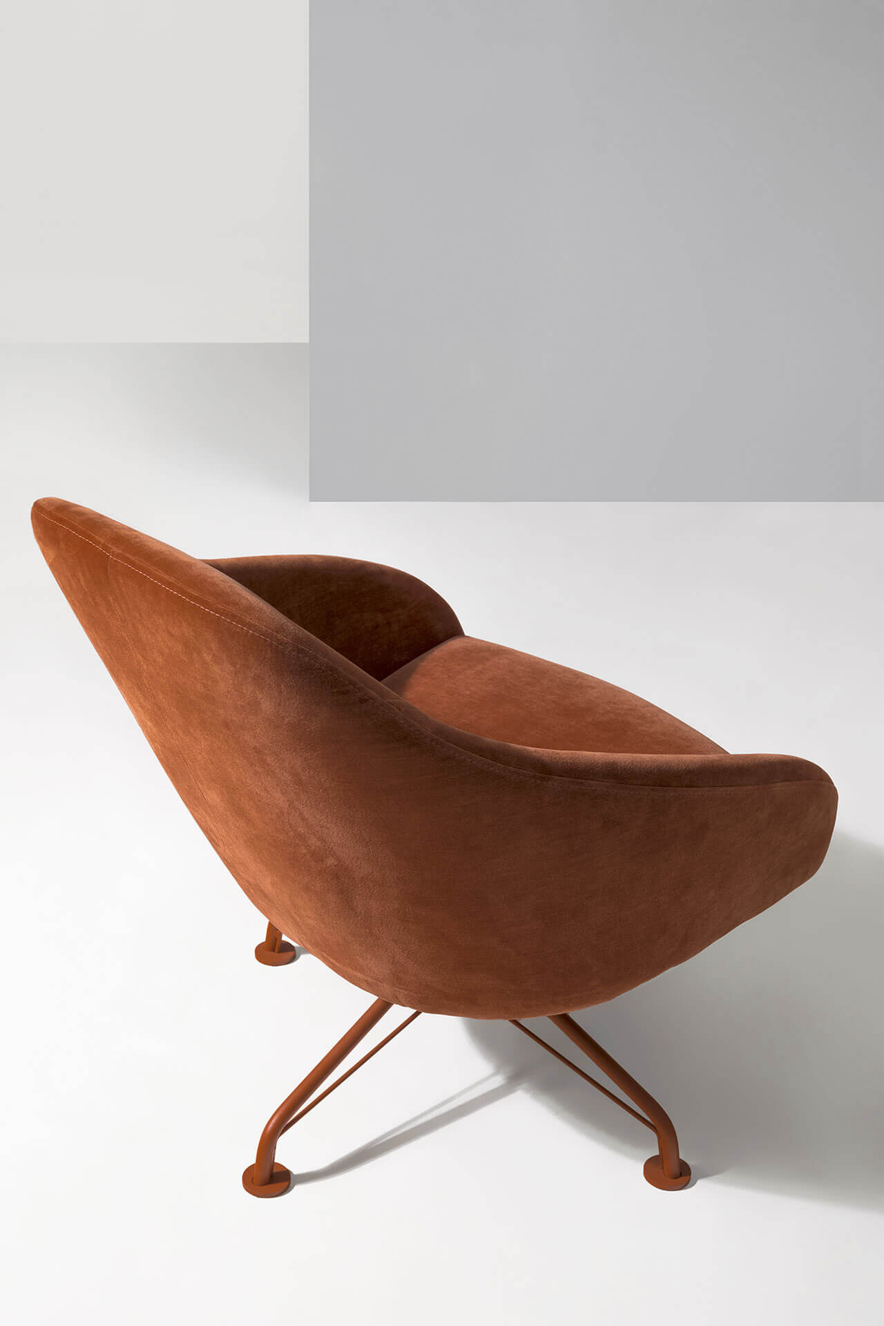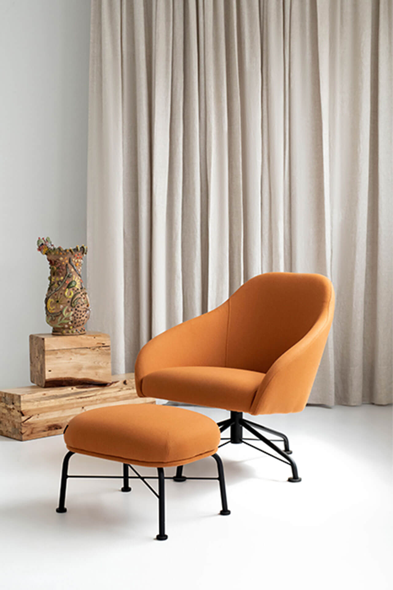 Irmã caçula da Poltrona Proa, a Proinha Giratória foi desenhada para se encaixar em ambientes menores. A peça é mais compacta e possui um sentar mais ereto - porém com o mesmo conforto de sua irmã mais velha. Sua versão giratória, que possui base exclusiva, é ideal para salas de estar, quartos, clínicas e lounges corporativos.