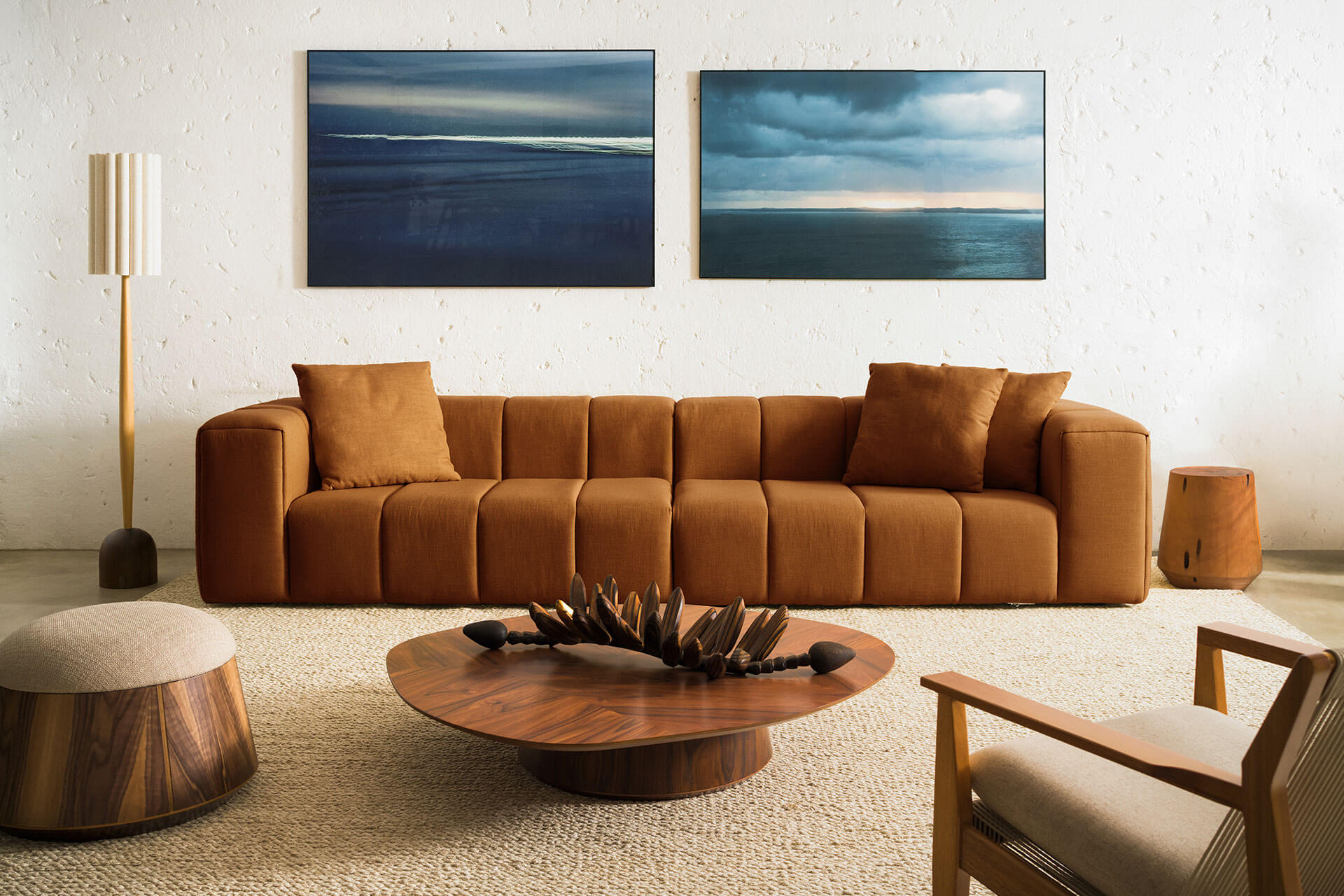 A sofisticação do Puff Lótus vem da base elaborada, feita de madeira natural nobre e de seu assento limpo e sem costuras em formato de gomo. Disponível em duas versões – P e G, é ideal para ser utilizado em conjunto (pares, trios ou mais), mesclando as alturas e diâmetros, formando ilhas em lounges, na frente de sofás ou onde sua imaginação quiser!
