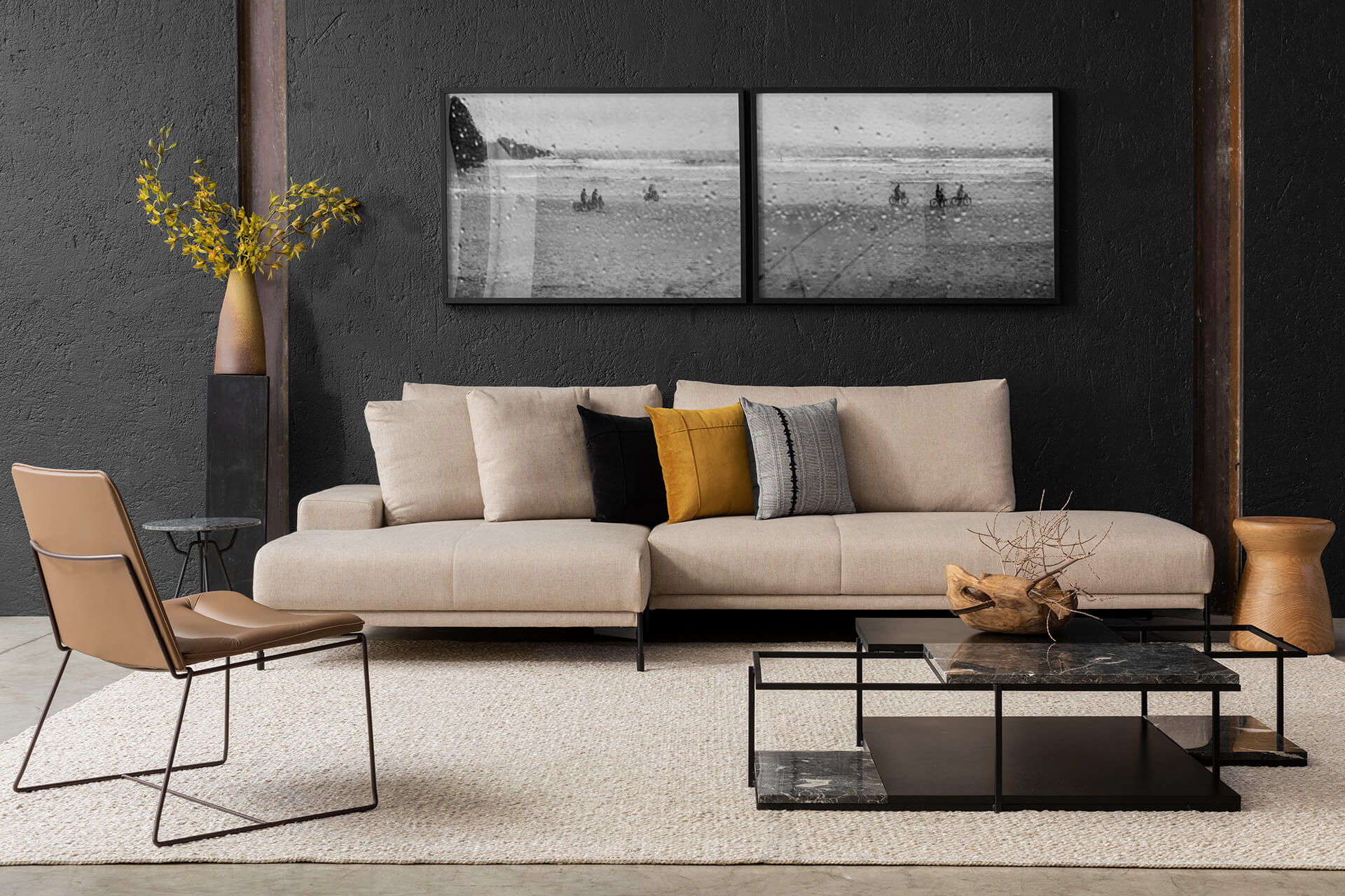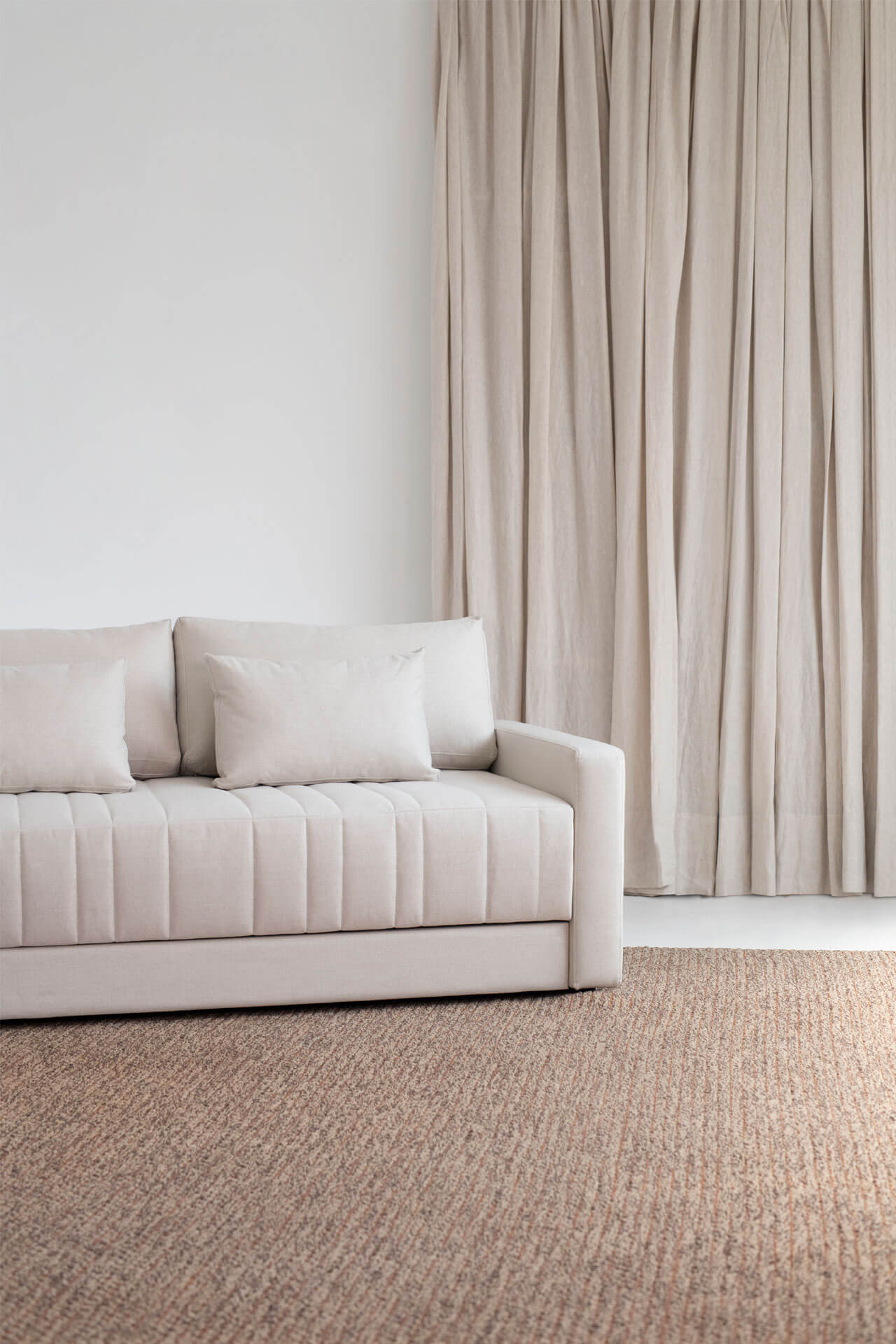 O charme do Tapete Nó está na mistura de quatro diferentes tipos de materiais e cores. Faz parte da nossa coleção de tapetes artesanais que une uma tradicional técnica do tear a uma seleção de materiais e cores.