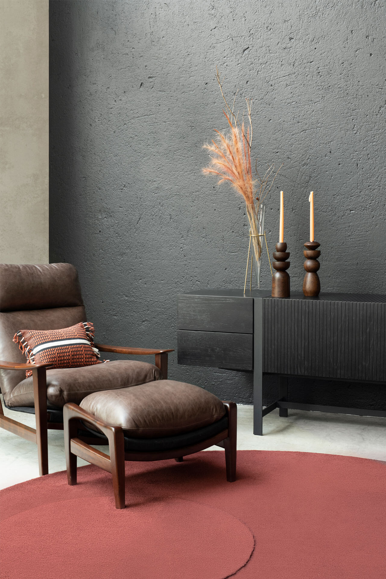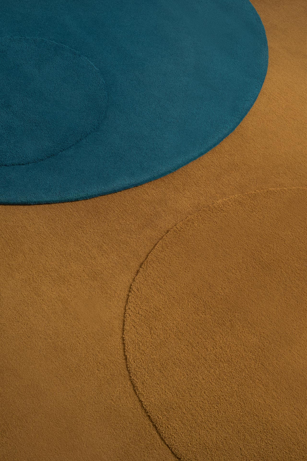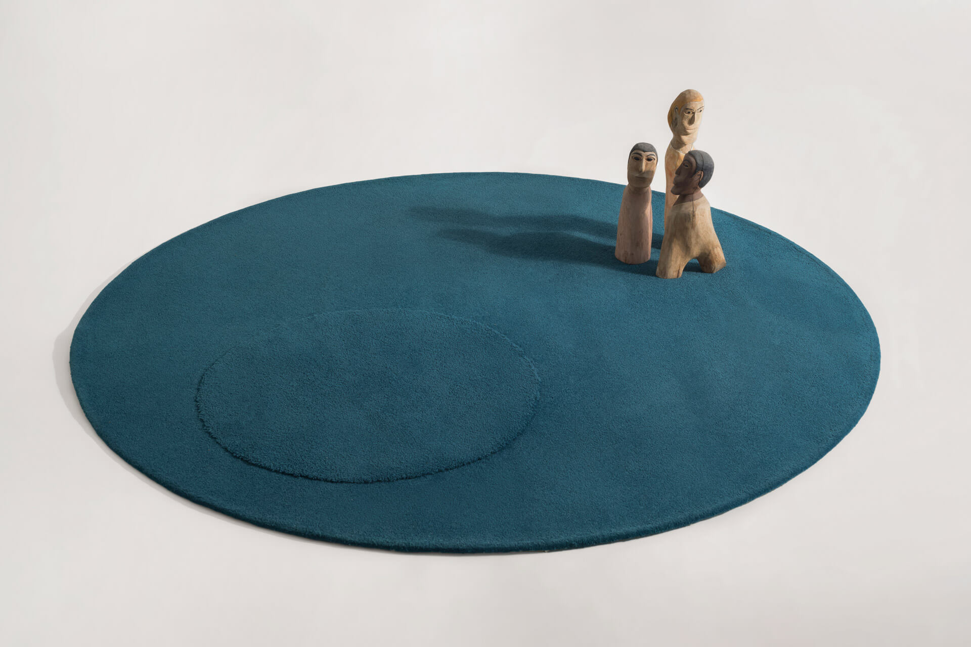 Um tapete redondo com desenho marcante de um círculo ao centro trabalhado com fio mais alto, esse modelo de tapete é confeccionado em fios contínuos 100% Nylon® de alta densidade. Com isso, é um produto antimicrobiano, isolante térmico e acústico, além de ser antiestático e lavável. Ele não solta pelos e não propaga chamas. Disponível em cores diversas.